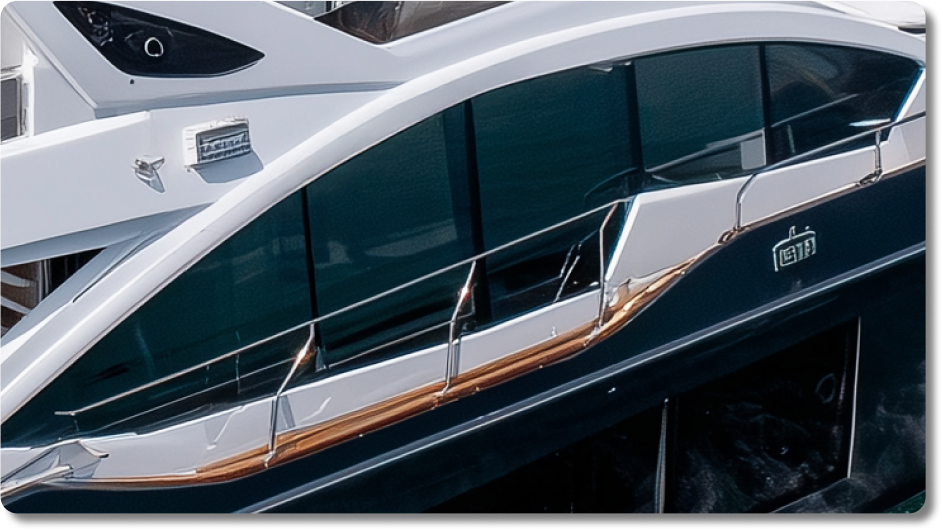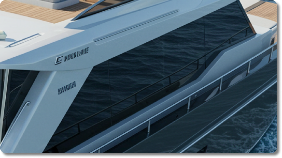 Feito sob medida, ele envolve janelas laterais, escotilhas e painéis fixos, garantindo estanqueidade e integridade estrutural, ao mesmo tempo em que valoriza o design arrojado do seu barco.
