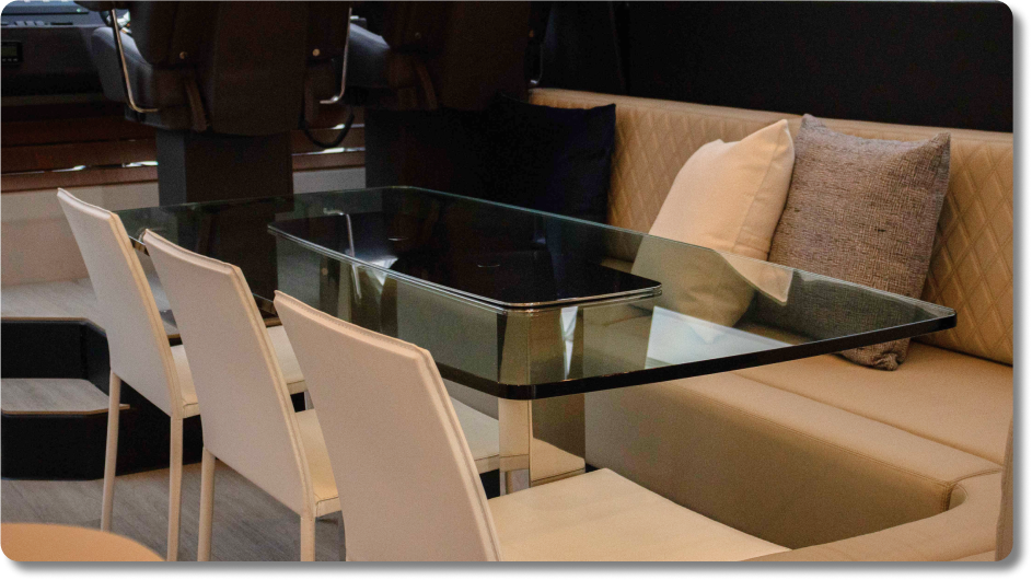 Valorize o interior do barco com elegância e a transparência do vidro.